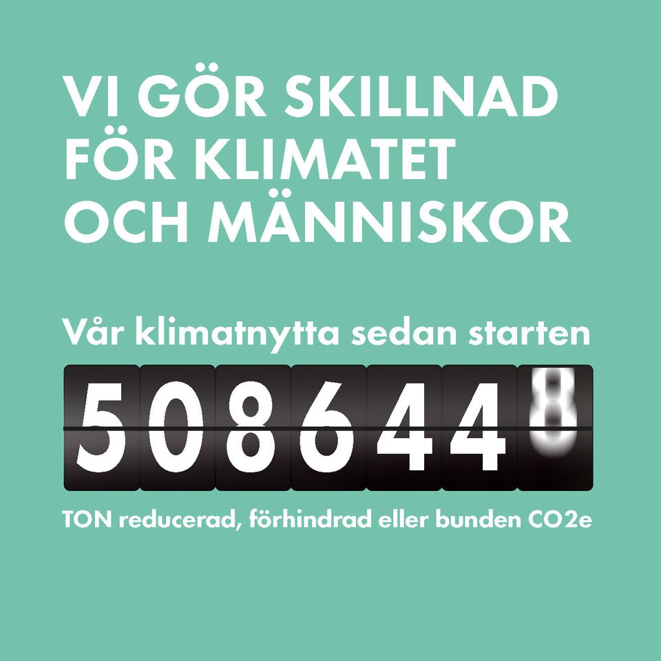 Vi erbjuder företag och organisationer klimatstrategier, klimatberäkningar och klimatkompensation. Vi driver på för att våra kunder snabbt ska kunna minska sin klimatpåverkan genom att mäta, sätta mål, minska och binda koldioxid. Sedan 2006 har vi samarbetat med flera av Sveriges framsynta företag. Vår vision är att tillsammans med våra kunder och projektpartners bidra till planetnytta. Hittills har vi förmedlat krediter i projekt som sammantaget förhindrat, minskat eller bundit in över 5 miljoner ton CO2. Utöver det har samtidigt en rad andra nyttor skapats som svarar upp mot många av FNs globala hållbarhetsmål.