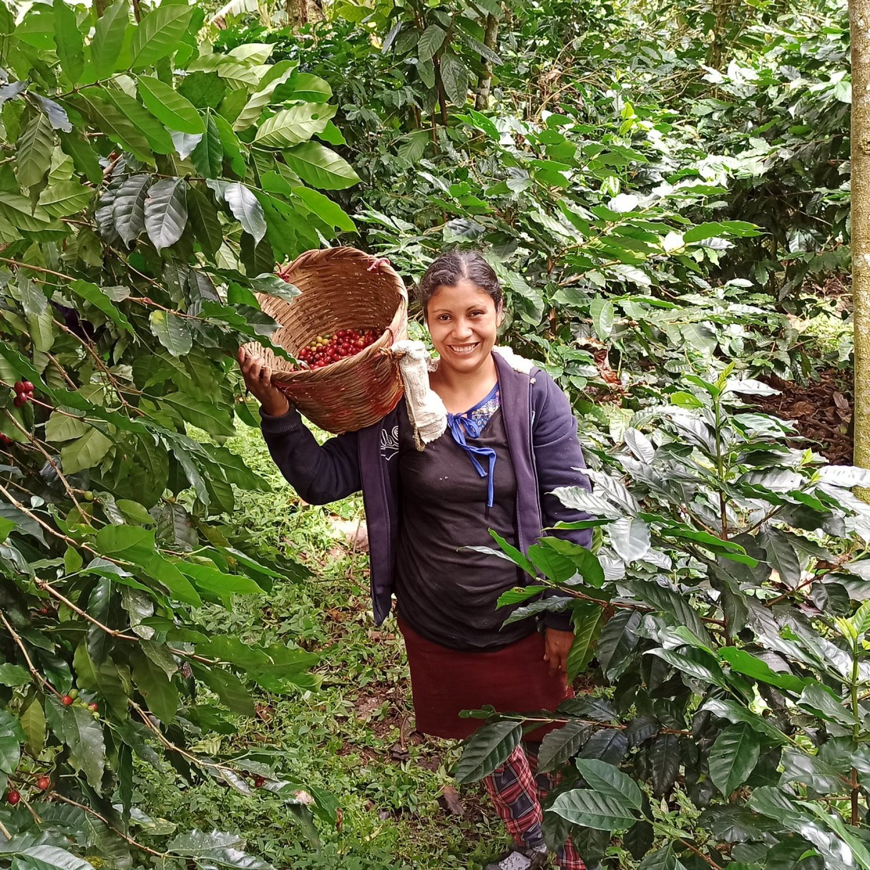 Småbrukaren Eliza Perez med sina kaffeplantor.