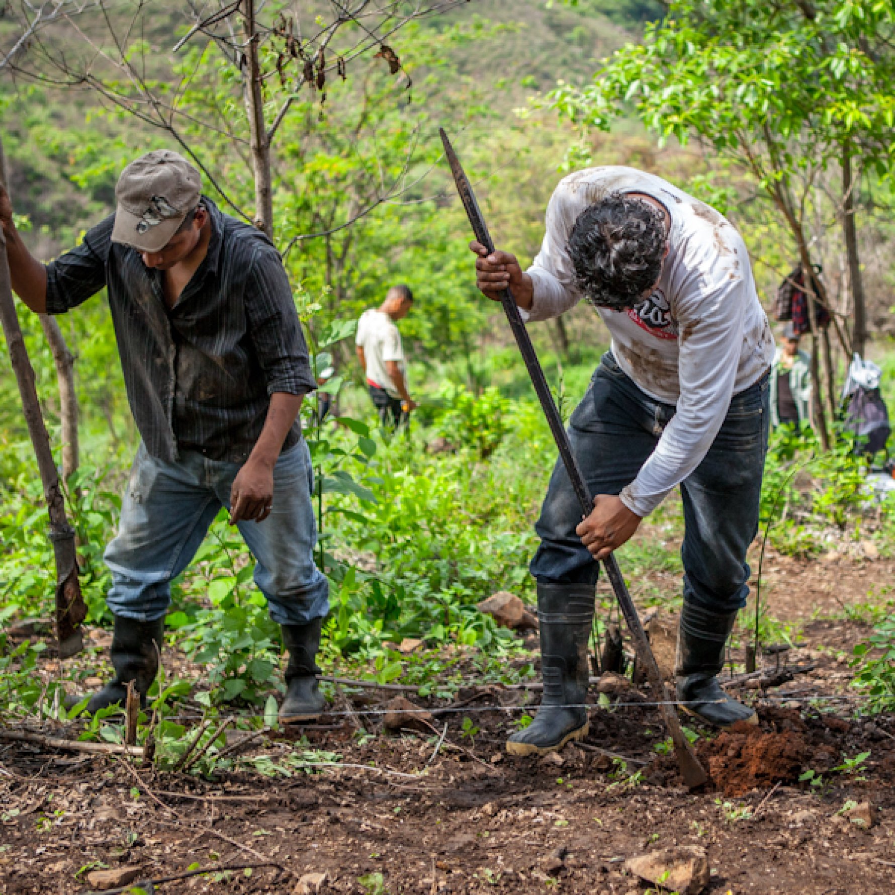 Projektet CommuniTree drivs av organisationen TakingRoot och ligger i norra Nicaragua. Det är ett projekt som tillsammans med småbrukande producenter planterar träd och grödor enligt en modell för skogsjordbruk, ”agroforestry”, på en yta av nästan 3 000 hektar. Modellen innebär att träd och grödor samplanteras för att efterlikna hur plantor växer naturligt, med följden att både kolinlagring och skördar ökar. Växter kan dra nytta av varandra på många olika sätt. Ett exempel är kaffeplantor som är känsliga för solljus och då kan planteras under större träd som får agera naturligt parasoll.