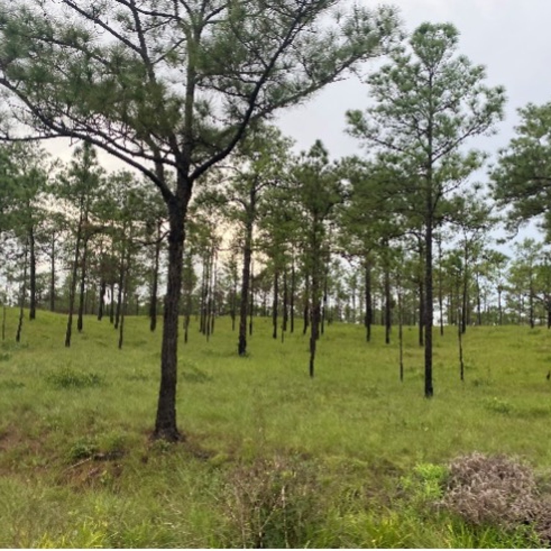 Agroforestry system with trees and coffee bushes.