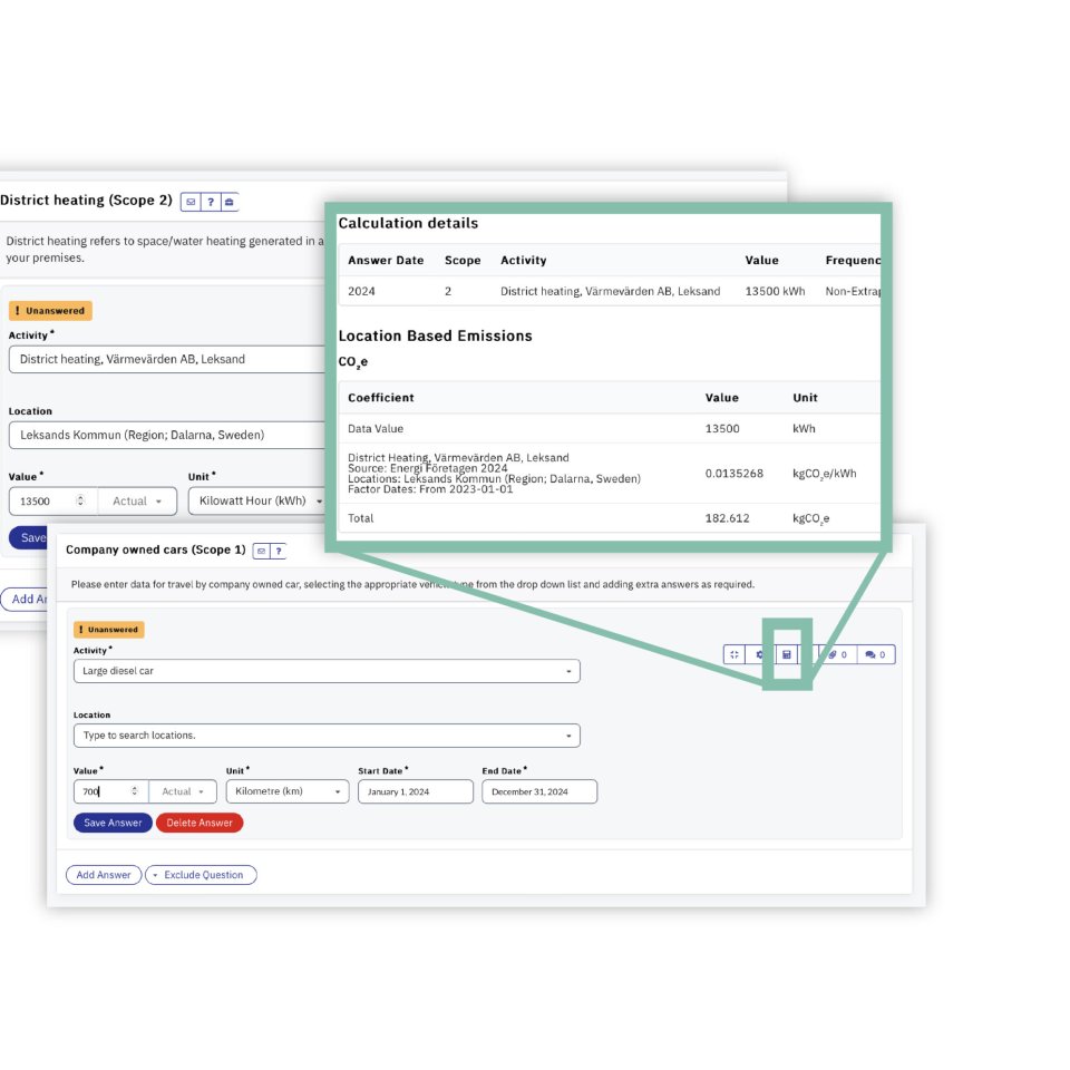 Vi använder ett ESG-verktyg som kallas Our Impacts Sustainability Platform, som är skapat av vår partner Ecoonline. Klimatmodulen i verktyget är baserad på GHG-protokollet, och CSRD-modulen är baserad på ESRS-standarden.